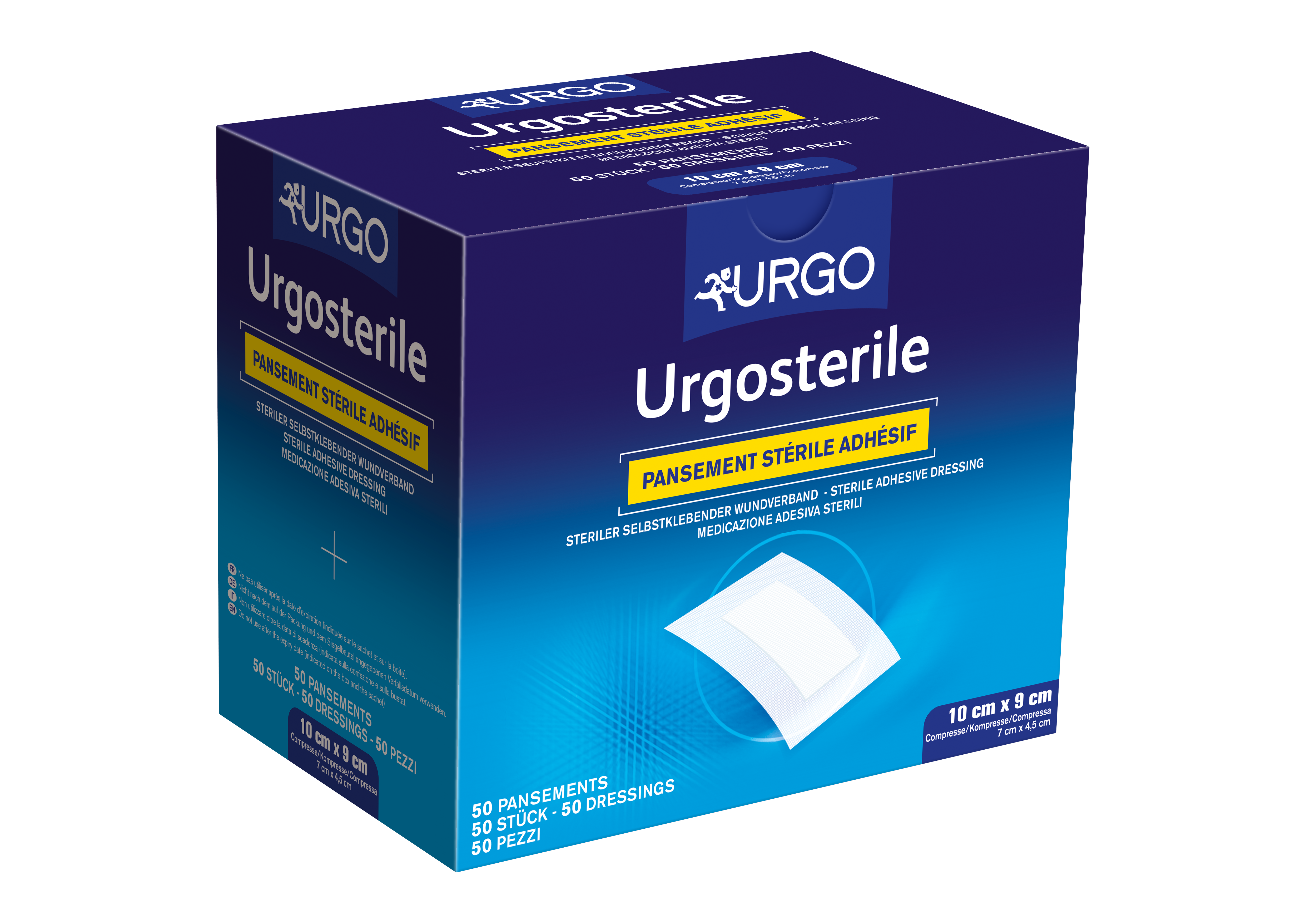 Der Urgosterile Verband ist ein steriler, selbstklebender Wundverband und besteht aus einer dehnbaren, weißen Vliesstoffrückseite, die mit einer Klebmasse beschichtet ist, und einer integrierten, absorbierenden Vlieskompresse, die mit einer an der Wunde nicht-haftenden Schicht bedeckt ist.
